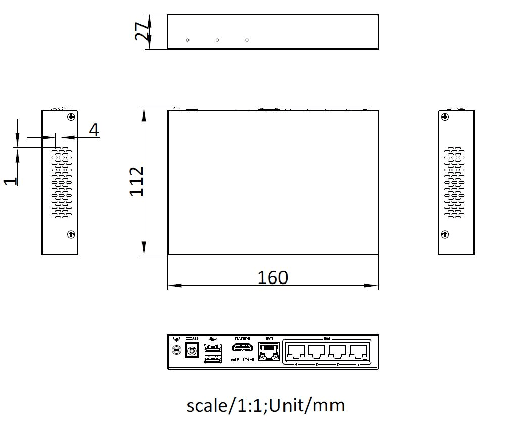 4-ch@1080p (25 fps)/4 voie 2TB SSD H.264-H.265,48VDC,1.04A,≤ 10 W (avec SSD),HDMI,
