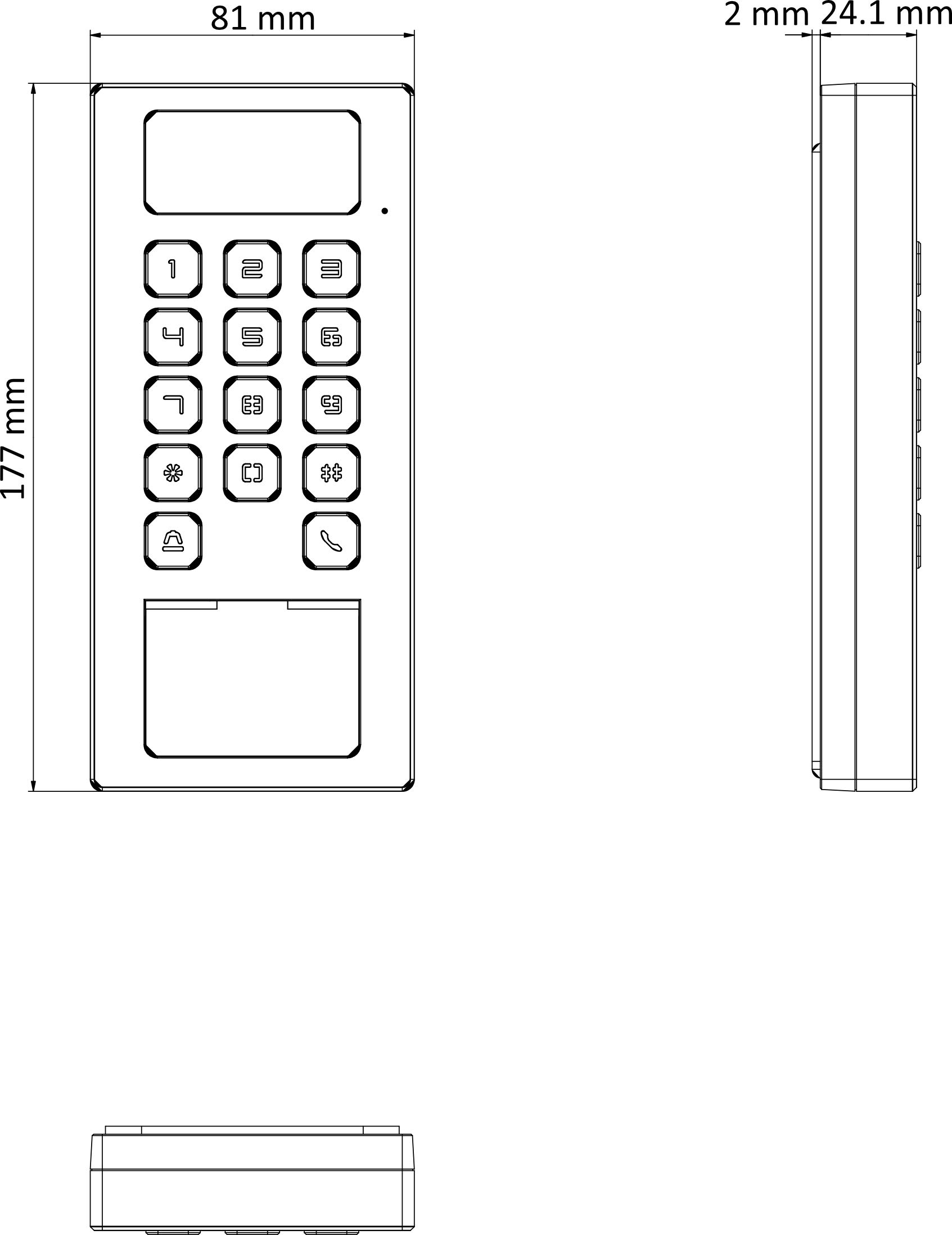 Terminal Contrôle d'accès, caméra 2MP, clavier chiffre, lecture de badge M1, Felica, DESfire et bluetooth, IP65, IK09, stockage de 100 000 badges, 300 000 évenement, audio bidirectionel, live-view, enregistrement, badge SD, Mode AP