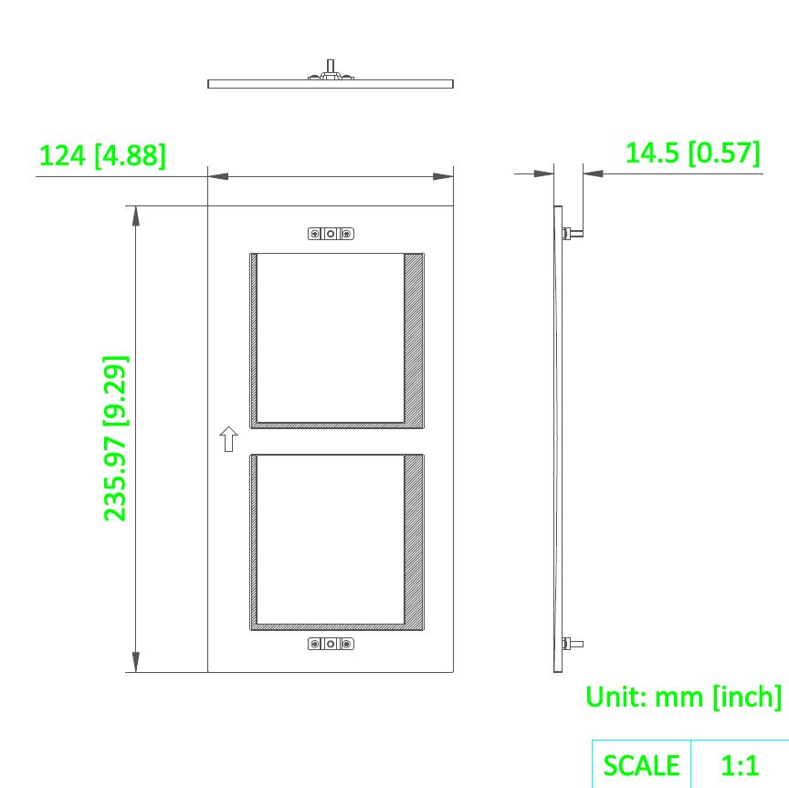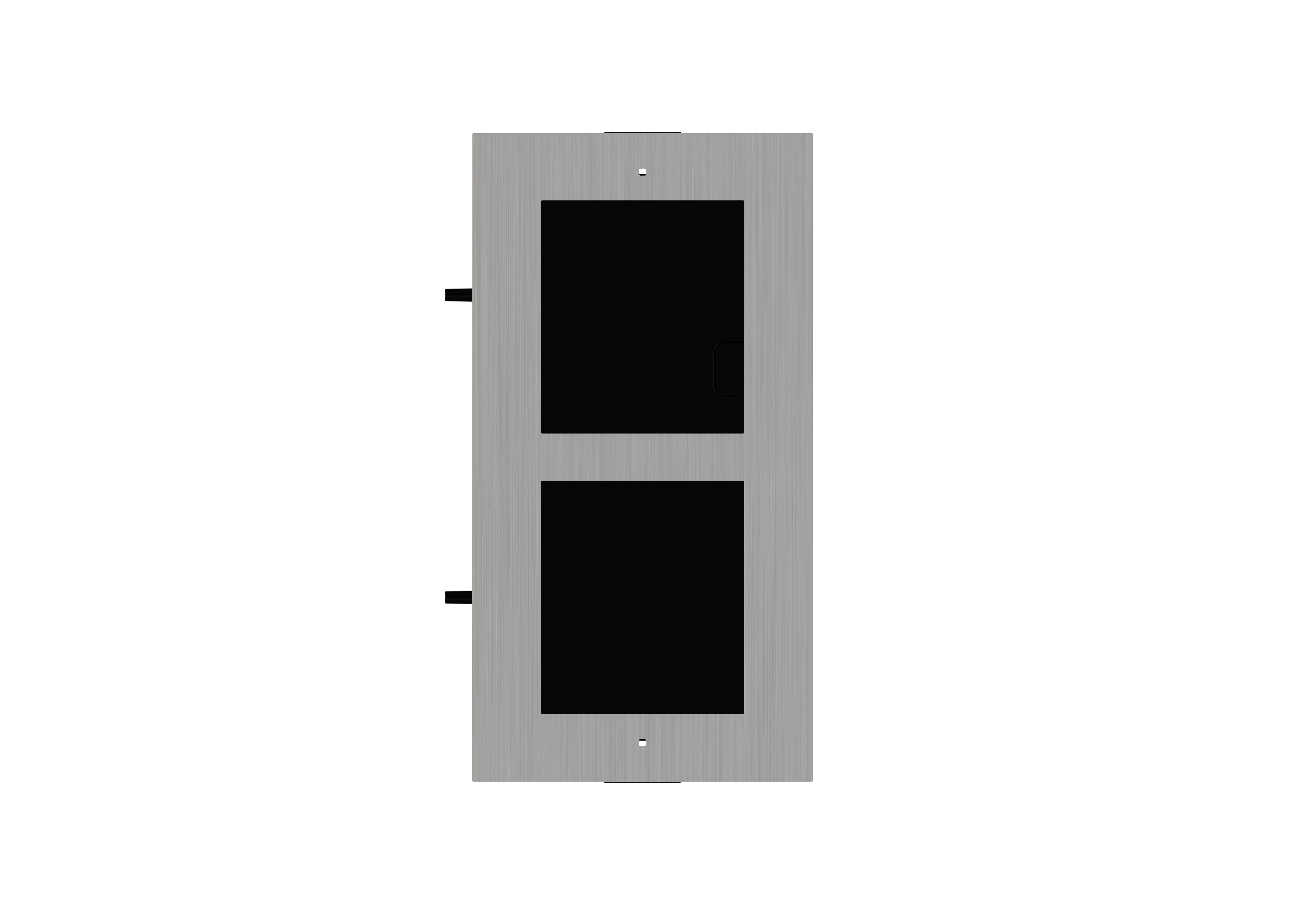 Support en acier inoxydable et plastique, accessoires pour montage encastré. Comprenant un eboîte de montage encastrée pour 2 modules, un panneau avant en métal pour 2 modules