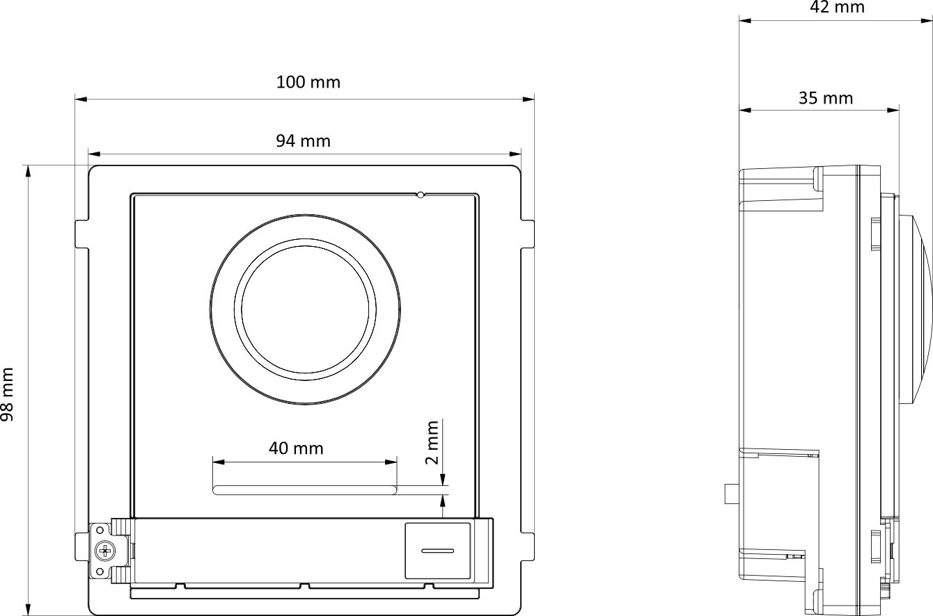 2MP Camera Fisheye IR (Horizontal : 146°, Vertical:82°), 1 bouton d'appel, 2-ch accès au poste intérieur, 10M/100M, module connection with RS-485, 4-ch entrée d'alarme, IP65. Les modules sont les mêmes que pour la platine de rue IP