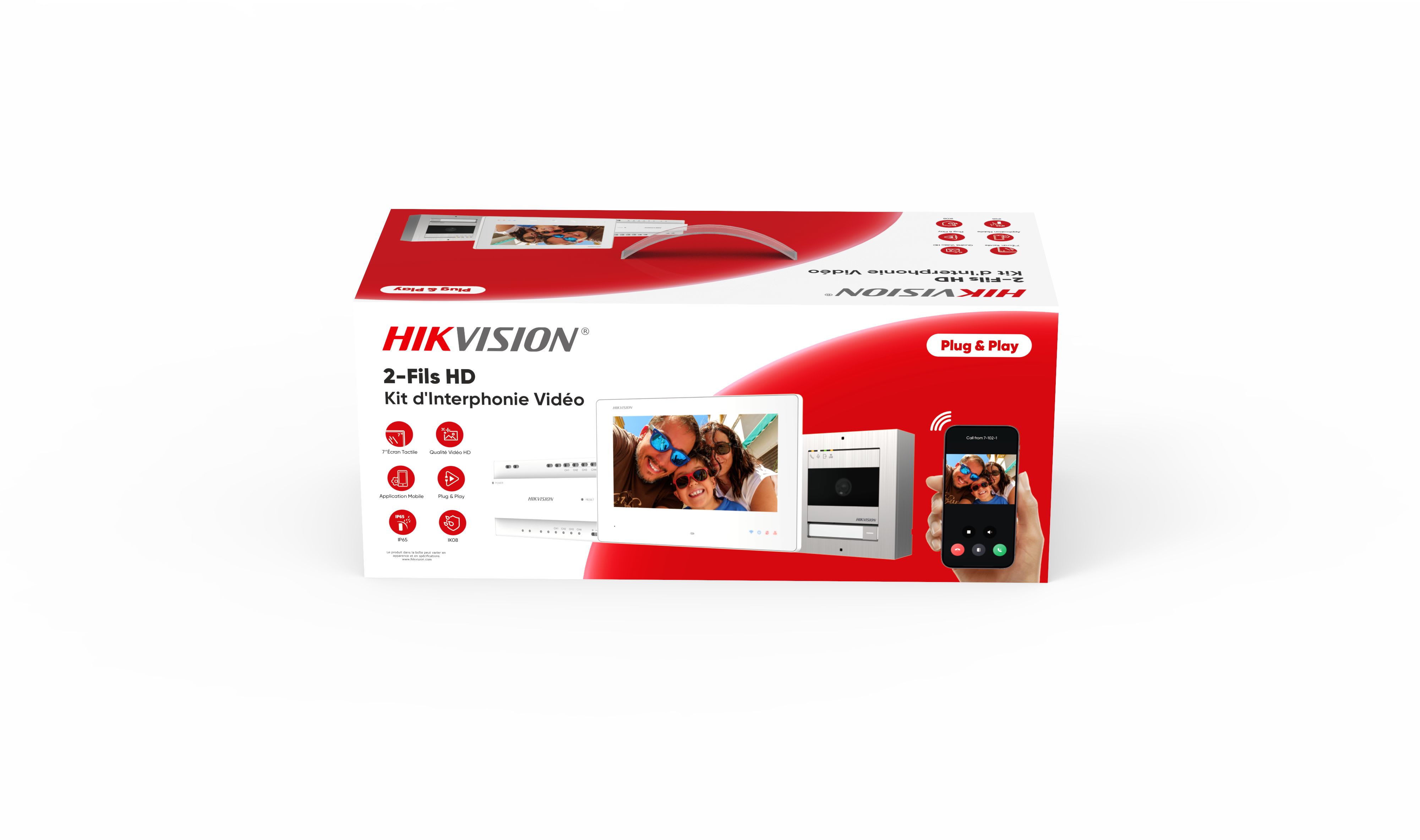 Hikvision - DS-KIS704EY/FRANCE SAS Kit d'interphonie vidéo 2 fils, Plug & Play, IP65, IK08 - 305305492