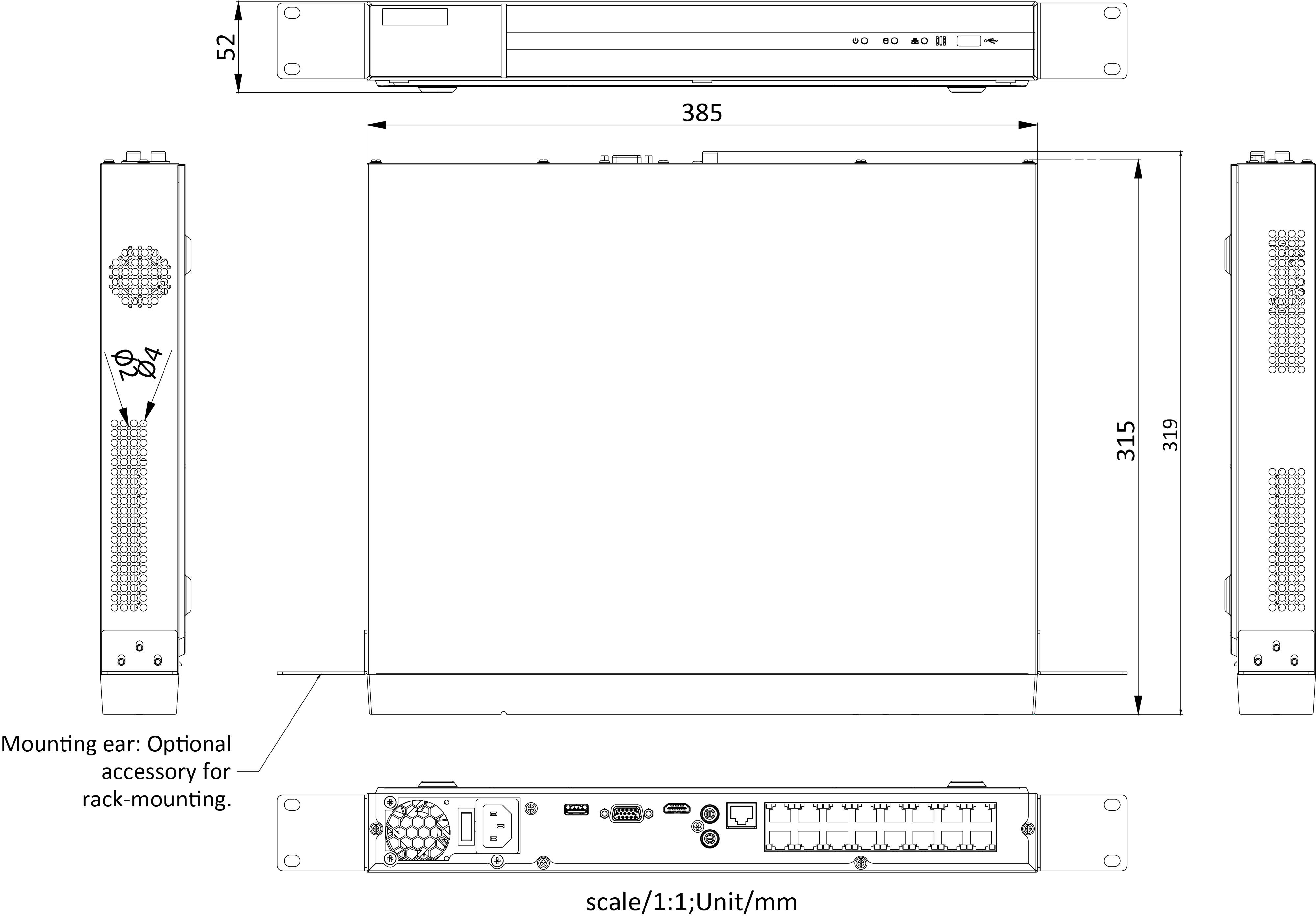 Entrée à débit binaire maximal de 160Mbps (jusqu'à 16-ch vidéo IP), H.265-H.265+-H.264-H.264+, 2 interSaces SATA, 16 interSaces réseau PoE indépendantes, boîtier autonome 1U 385(Metal)