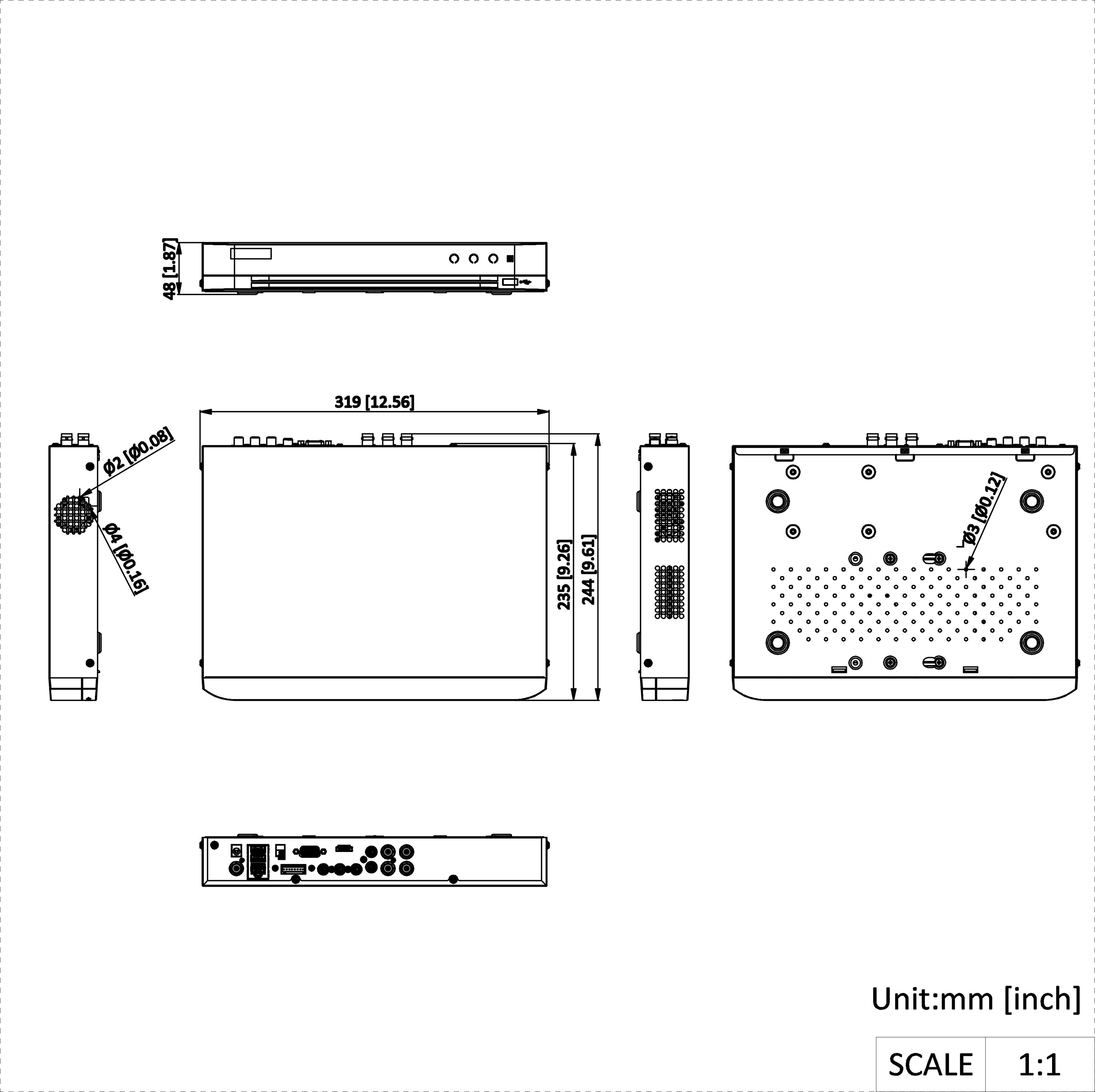 DVR 4 canaux AcuSense 5MP : encodage 4K/8 fps, 5 MP/12 fps, 5 signaux adaptatifs (HDTVI-AHD-CVI-CVBS-IP), jusqu’à 8 caméras IP, 2 canaux faciaux, 4 périmétriques, audio bidirectionnel, 1 interfaces SATA.