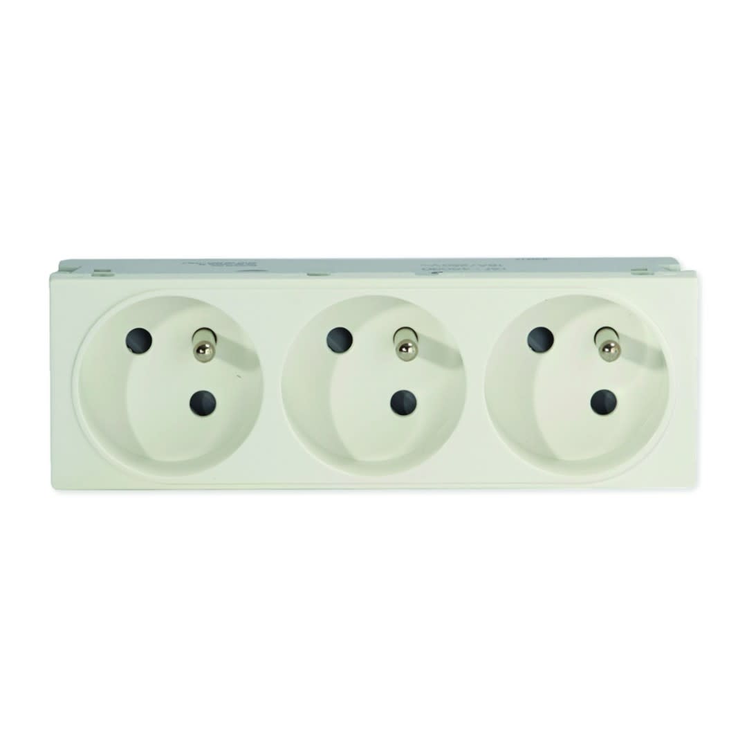 Iboco - Prise Tercia 2 pôles + terre triple spécial goulotte blanche - B45030