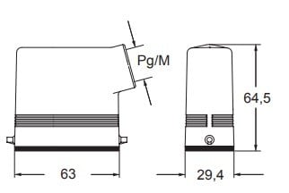 Capot 2 pivots haut profil sortie verticale, entrée de câble PG16 - gabarit 49.16