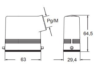 Capot en aluminium 2 pivots, sortie latérale entrée de câble M20 - gabarit 49.16