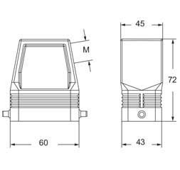 Capot 2 pivots sortie latérale entrée de câble M40 - gabarit 44.27 - sans adaptateur