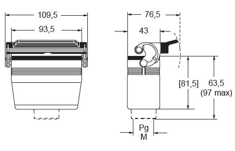 Capot prolongateur haut profil 1 levier sortie verticale, entrée de câble PG29 - gabarit 77.27- série CLASS