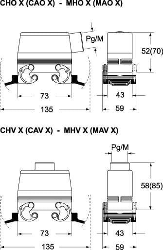 Ilme - Capot haut profil 2 leviers sortie latérale PG29 sans joint - gabarit 57.27 - CAV10X29