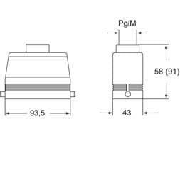 Capot haut profil 2 pivots sortie verticale, entrée câble PG29 - gabarit 77.27 - série CLASS
