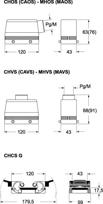 Capot haut profil 4 pivots, sortie verticale entrée de câble M40 - gabarit 104.27 - série CEM