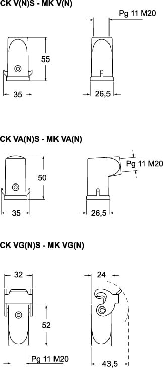 Ilme - Capot plastique sortie latérale gabarit 21.21 PG11 - CK03VAS