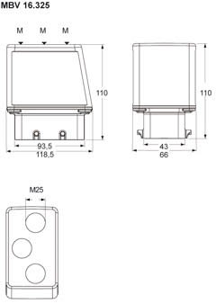 Ilme - Capot série BIG 4 pivots gabarit 77.27 sorties verticales 3 M25 - MBV16.325