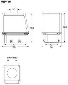 Capot 4 pivots sortie verticale 1xM50 - gabarit 57.27 - série BIG (grande hauteur)