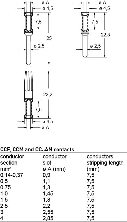 Contact à sertir doré femelle 16A pour conducteur section 4.0mm² AWG12 - série CC