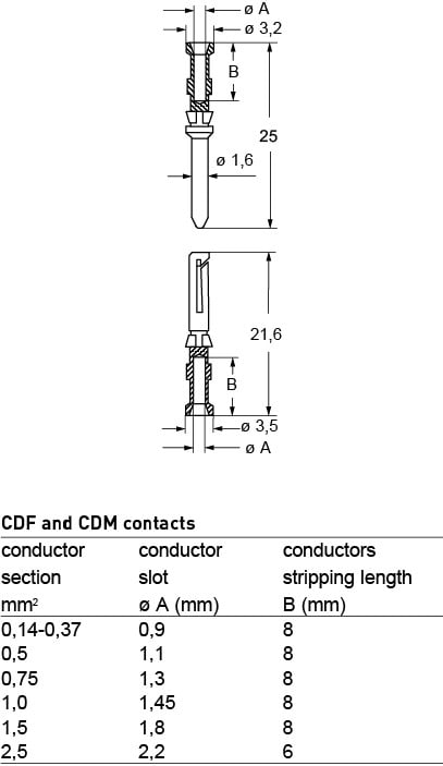 Contact à sertir mâle argenté 10A pour conducteur section 1.5mm² AWG16 - série CD
