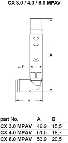 Ilme - Contact pneu. métal coudée femelle diam. extérieur 4mm racc. rapide avec valve - CX4.0MPAV