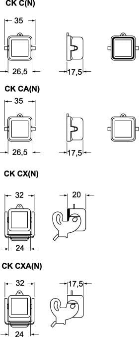 Couvercle plastique avec pivots et joint pour inserts femelles - gabarit 21.21 - série CK