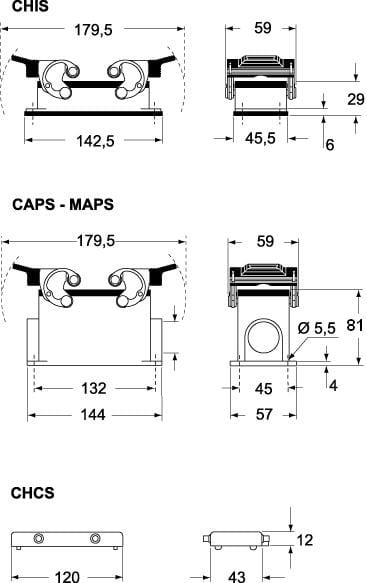 Ilme - Embase haut profil 2 leviers gabarit 104.27 1 entrée câble M32 - série CEM - MAPS24.32