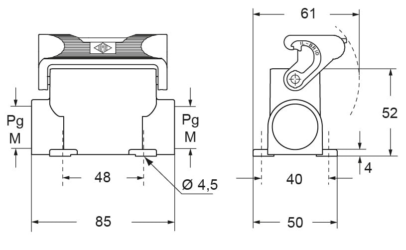 Ilme - Embase saillie 1 levier entrée M25 gabarit 49.16 - MZP15L25