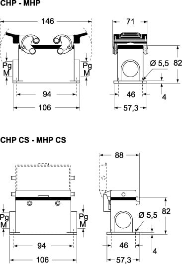 Ilme - Embase saillie 1M32 2 leviers gabarit 66.40 - MHP50.32