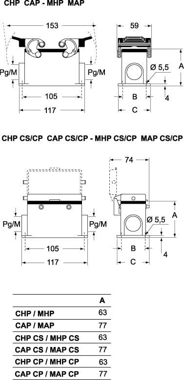 Embase en saillie haut profil 2 leviers, 2 entrées PG21 - gabarit 77.27 - série CLASS