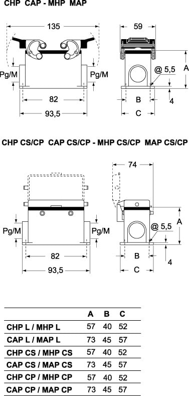 Embase en saillie en aluminium haut profil 2 leviers, 2 entrées de câble M40 gabarit 57.27