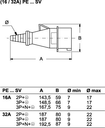 tension selon EN 60309-2 - 230 V (50+60 Hz) bleu