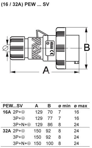 Ilme - Fiche mobile 220V 16A IP67 2P+T - PEW1663SV