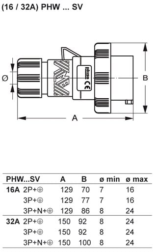 Ilme - Fiche mobile 32A 200/250V 2P+T IP67 série heavy duty - noire - PHW3263SV