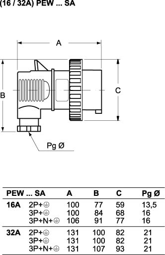 Ilme - Fiche mobile coudée 380V 32A IP67 3P+T+N - PEW3265SA