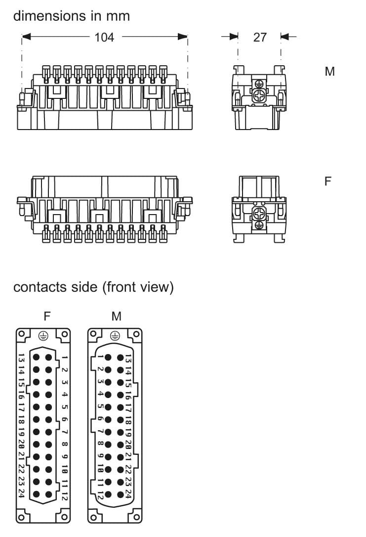 Ilme - Insert femelle 24P+T 16A 500V gabarit 104.27 série SQUICH - CSHF24
