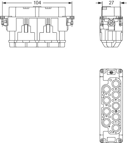 Insert femelle 8 pôles + Terre 100A-690V, raccordement à sertir - gabarit 104.27 - série CX