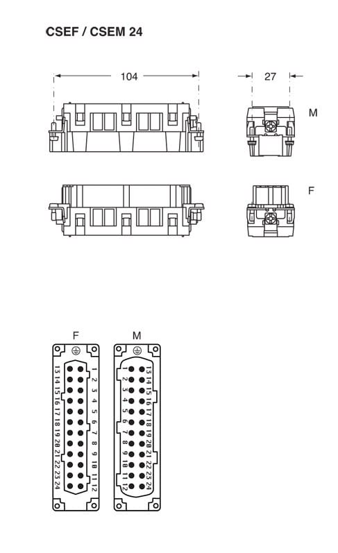 Ilme - Insert femelle à lame de pression 24P+T 16A 500V - gabarit 104.27 - CSEF24