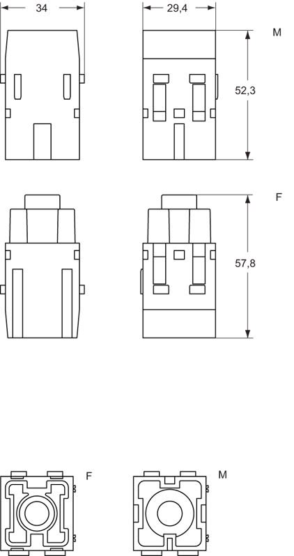 Insert femelle 1 pôle 200A 1000V, raccordement à sertir - série MIXO (encombrement 2 modules)