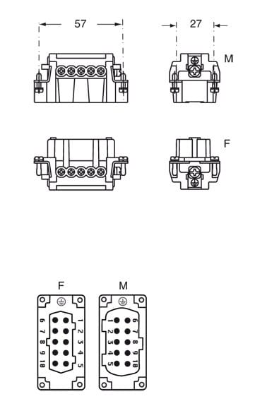 Ilme - Insert femelle à visser 16A 500V 10P+T gabarit 57.27 - CNEF10T