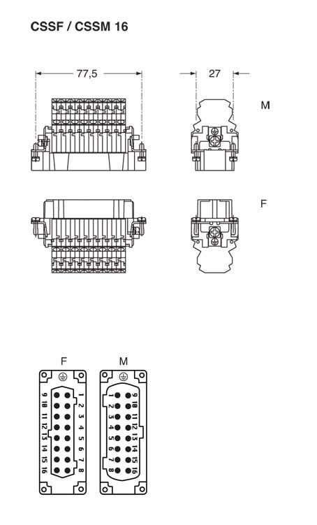Ilme - Insert femelle double lame de pression 16p +T 16A 500V gabarit 77.27 - CSSF16