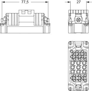 Insert mâle 9 pôles 40A-690V + 42 pôles 10A-250V + Terre, raccordement à sertir - gabarit 77.27