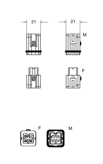 Ilme - Insert mâle à lame de pression 3P+T 10A 400V - gabarit 21.21 - CKSM03