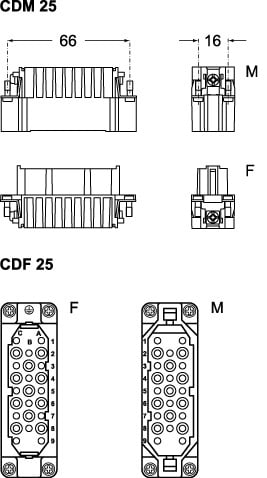 Ilme - Insert mâle à sertir 25P+T 10A 250V gabarit 66.16 - CDM25