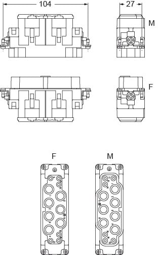 Ilme - Insert mâle à sertir 6 pôles 100A + 6 pôles 16A - gabarit 104.27 - CXM6/6