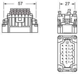 Insert mâle 18 pôles + Terre 10A - 400V, raccordement rapide SQUICH® - gabarit 57.27 série CDSH