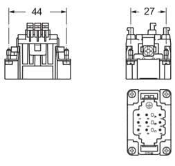 Insert mâle 9 pôles + Terre 10A - 400V, raccordement rapide SQUICH® - gabarit 44.27 série CDSH