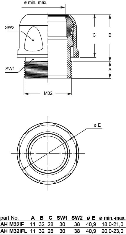 Ilme - Presse-étoupe HYGIENIC M32 IP68/IP69 - AHM32IF