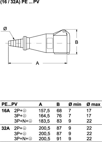 Prise femelle mobile 100/130V 16A 2P+T, position Terre 4h (jaune), raccordement à visser, degré IP44
