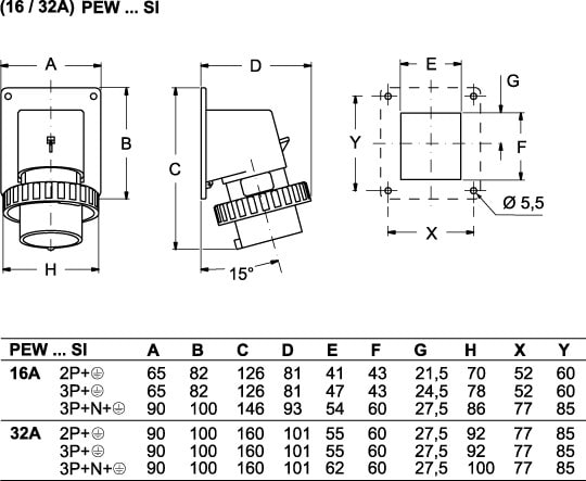 Ilme - Socle de connecteur encastré 3P+T 380V IP67 16A - PEW1664SI