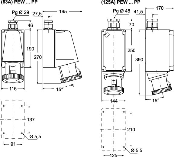 Ilme - Socle de prise 380V 3P+T 63A IP67 - PEW6364PP