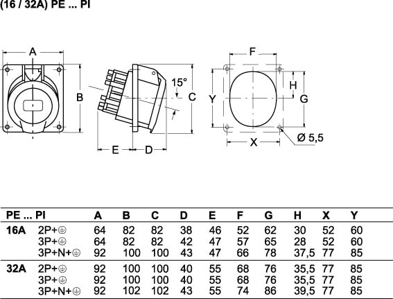 Ilme - Socle incliné 380V 16A 2P+T IP44 - PE1693PI