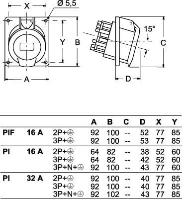Ilme - Socle incliné 380V 16A 3P+T IP44 pour coffret FM - PE1664PIF