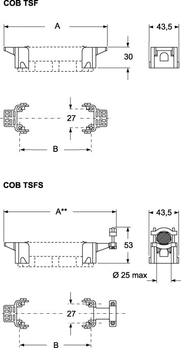 Support d’insert plastique COB pour partie mobile, sans serre câble, compatible gabarits standards.